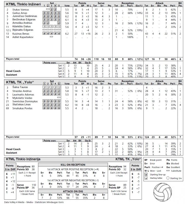 „Tinklo Inžinerija“ išlaikė 3 seto ritmą. Stabilus puolimas ir mažiau klaidų. TK „Yolo“ priėmimas pagerėjo, bet puolimo realizacija išliko silpna. Rungtynės išlyginamos – 2 : 2.